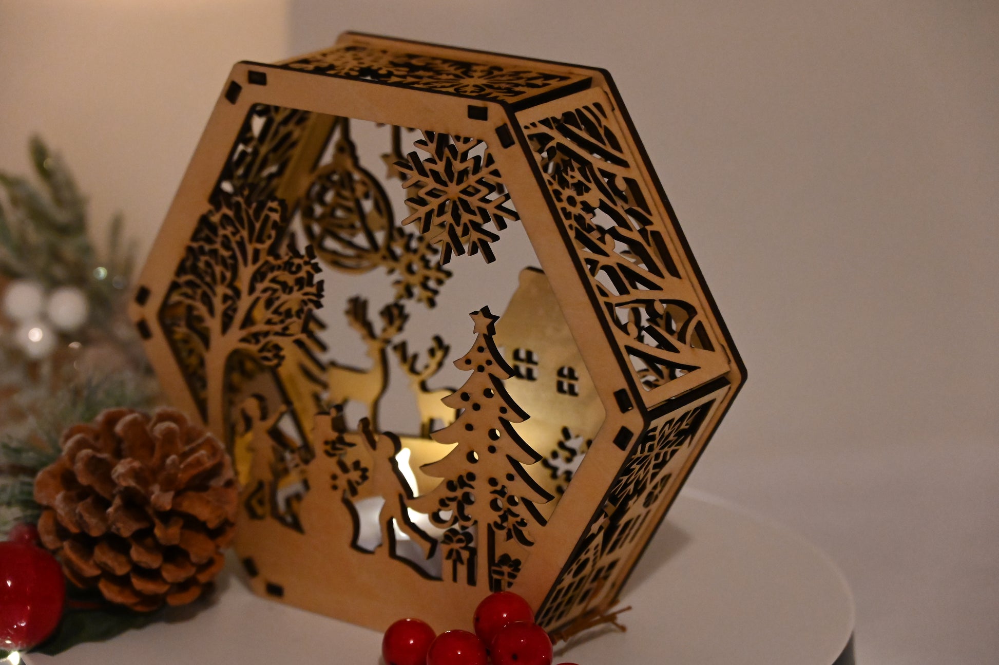 Material: Premium birch plywood, sustainably sourced, LED tealight candle not included
